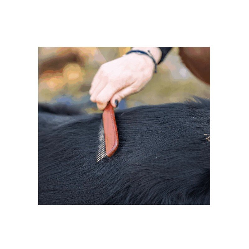 El Peine para perro de madera (Código 5675100100) de Herm. Sprenger es un accesorio de cuidado canino de alta calidad, ideal para mantener el pelaje limpio, brillante y libre de enredos. Su diseño combina un mango de madera natural ergonómico con púas metálicas resistentes, lo que facilita un cepillado cómodo tanto para el dueño como para la mascota. Este peine es perfecto para perros de pelo medio o largo, ayudando a eliminar suciedad, polvo y pelo muerto, mejorando la salud de la piel y el aspecto del manto.